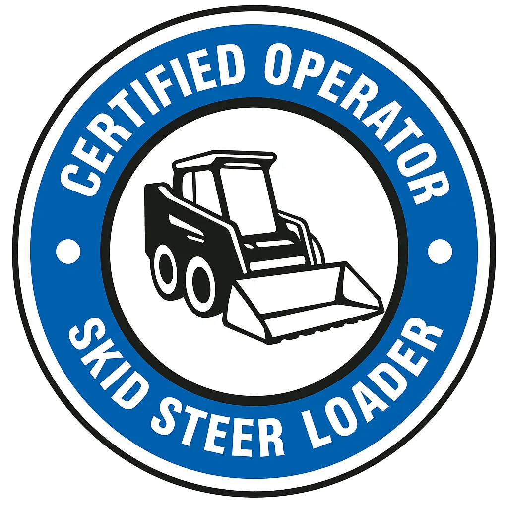 - Bold “Certified Operator – Skid Steer Loader” text for instant identification.